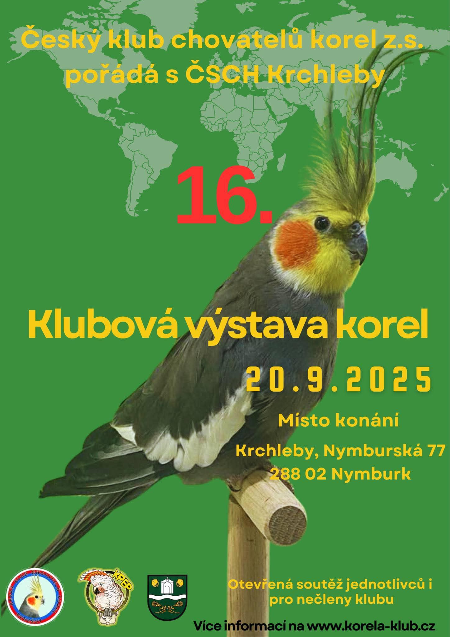 Zveme Vás k obeslání a návštěvě již tradiční výstavy korel, která se koná v příjemném prostředí obce Krchleby. Domluvena je účast zahraničních chovatelů, vystavujeme korely r.2017 – 2021. Posouzení provede špičkový chovatel a posuzovatel korel. Těšíme se naše setkání.